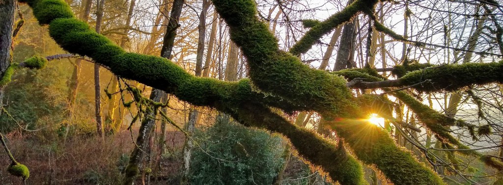 Poulsbo, WA – I love walking January’s chilly forest. Winter solstice has quietly passed and the woodlands are resting before the coming burst of springtime growth. Bright orange jelly spot fungus dot the surfaces of wet stumps like little nightlights glowing in the dim winter light. Moss-draped trees have slipped their pointy toes into cozy thick green stockings and woodland plants are in various states of undress. I can almost hear them snoring.